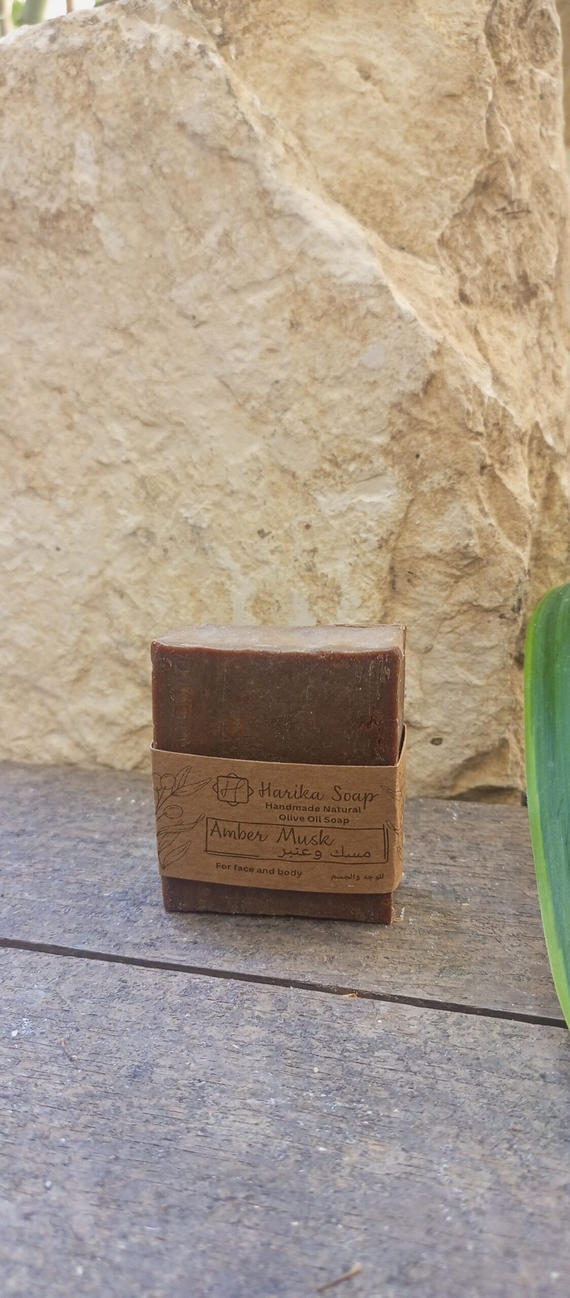 Ingredients: 100% pure olive oil, sodium hydroxide, water, amber and musk essential oil.
