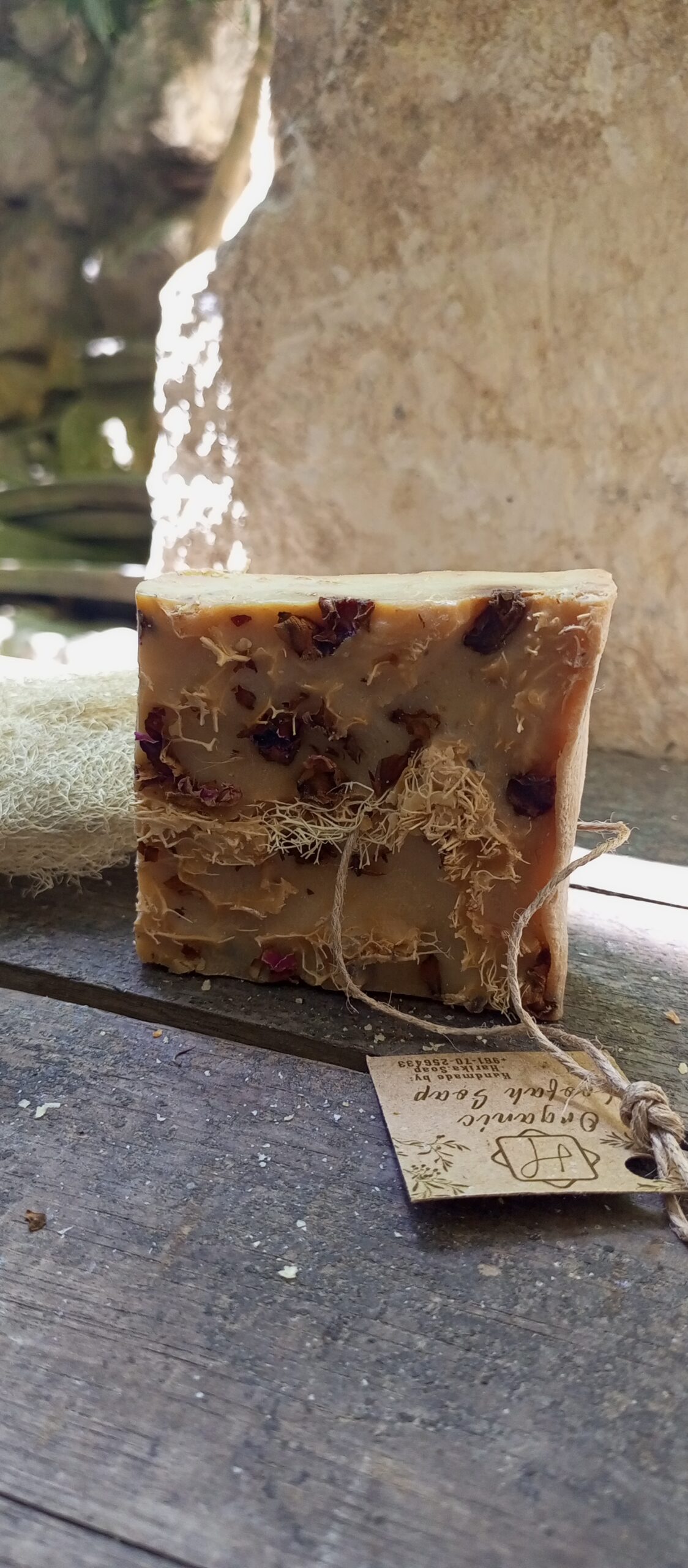 Ingredients: olive oil soap poured in organic loofah soap with rose infused oil, rose hydrosol, dried rose